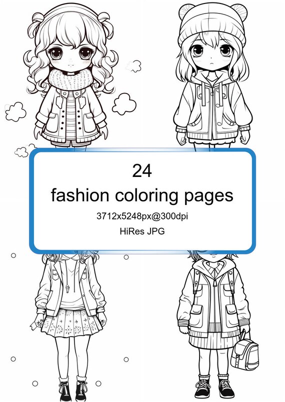 24 Fashion Coloring Pages As Printable Jpg Bundle For Children Etsy